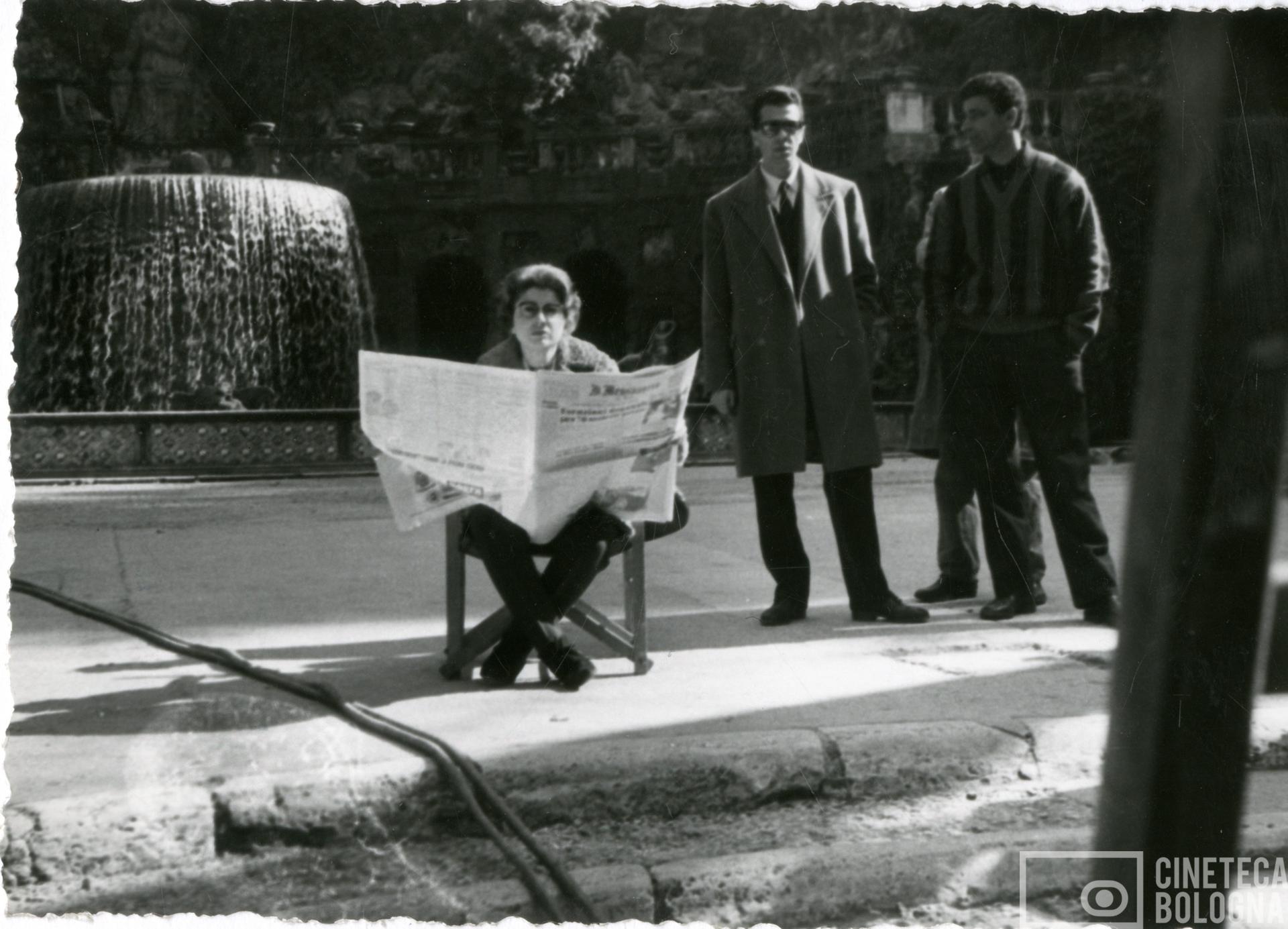Tivoli. Mara Blasetti e due persone non identificate a Villa d’Este durante le riprese del film Gidget Goes to Rome