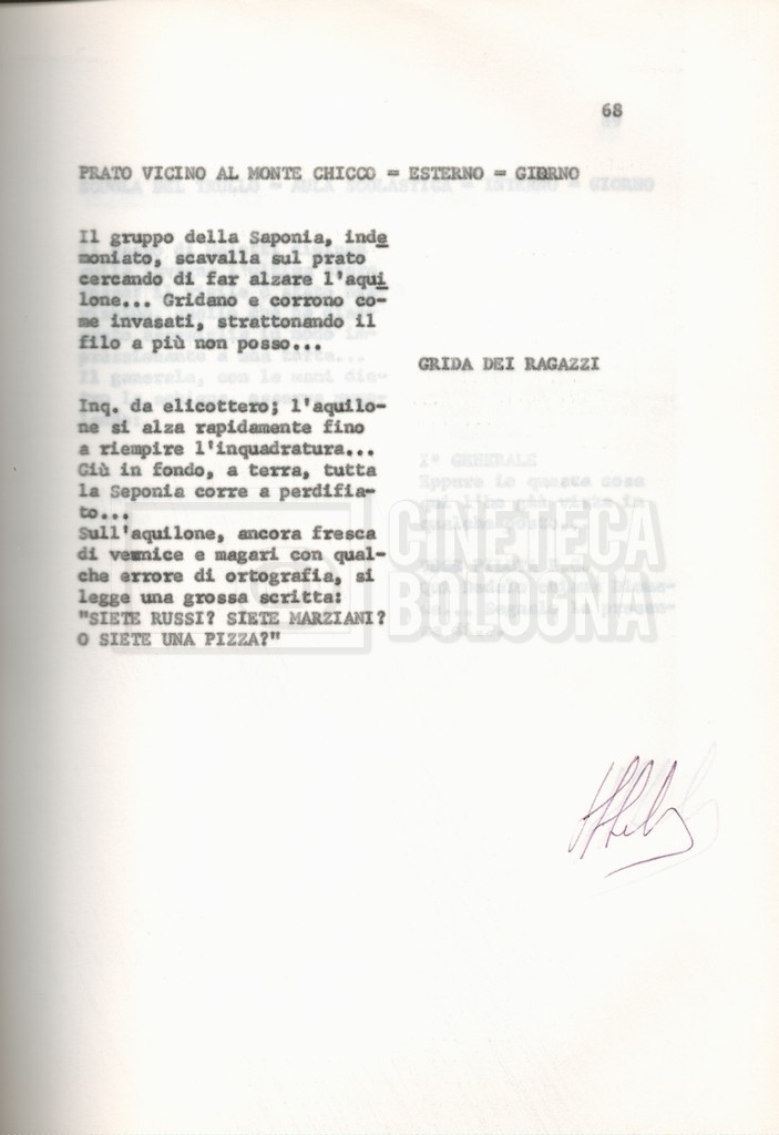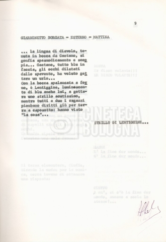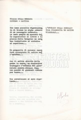 DOCUMENTO STORICO “Materiale Italnoleggio; manifesti; appunti e dichiarazioni di Lino Del Fra sul film”