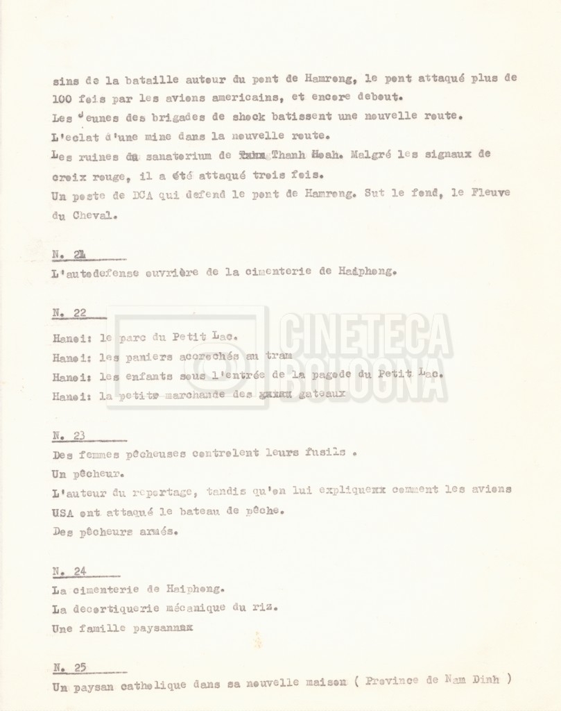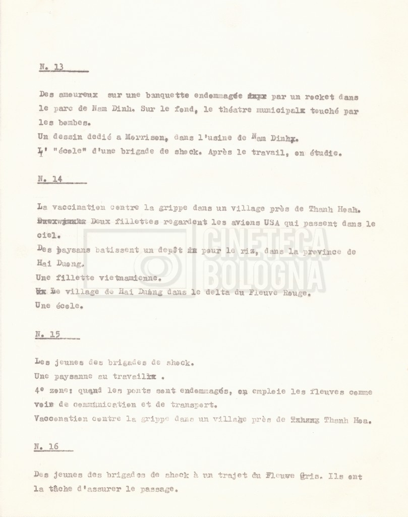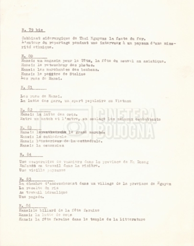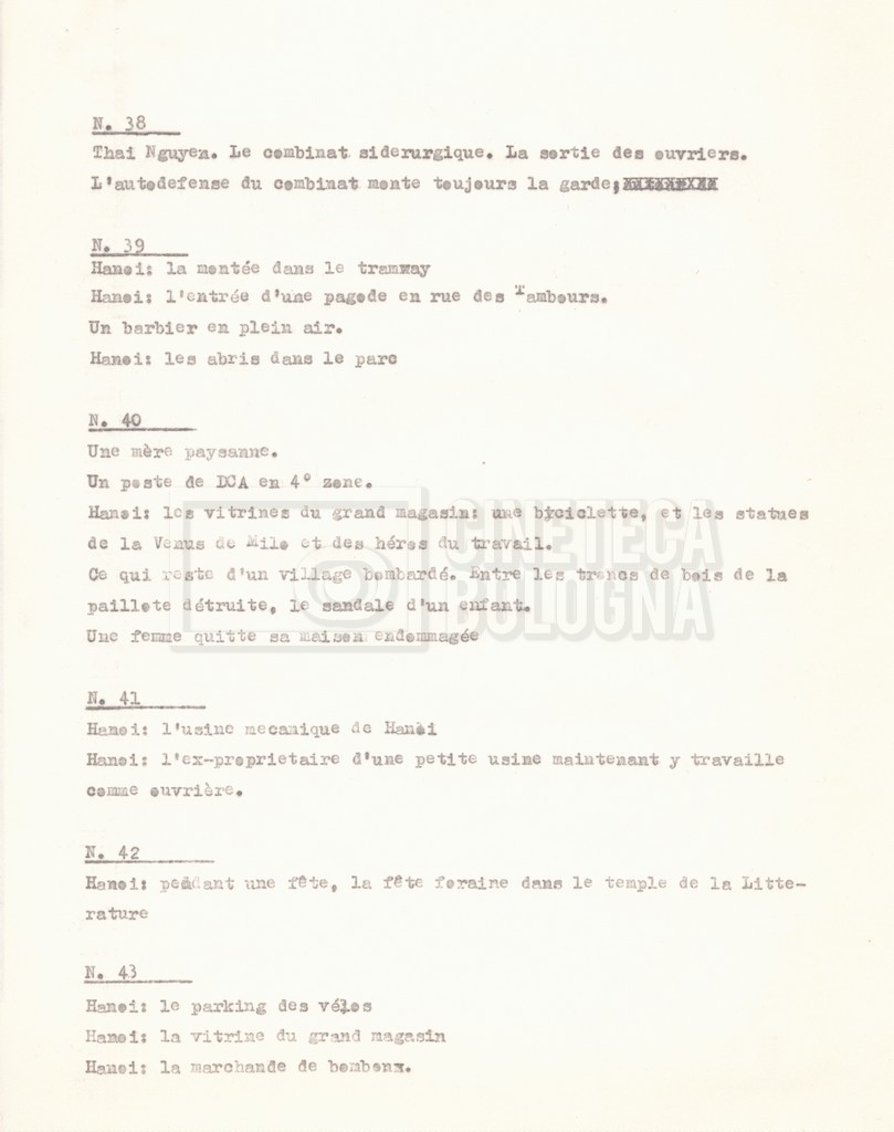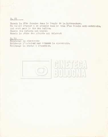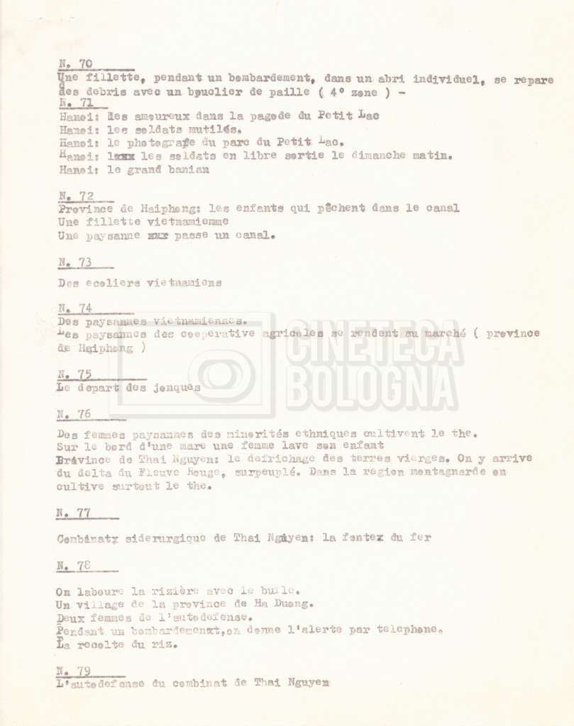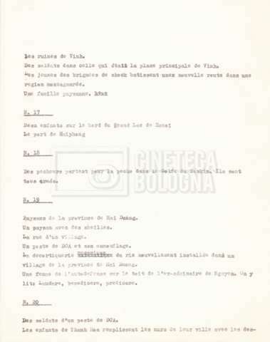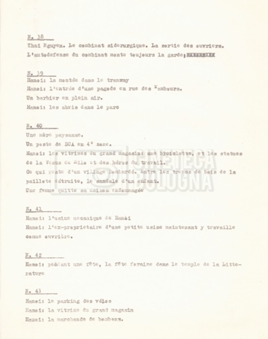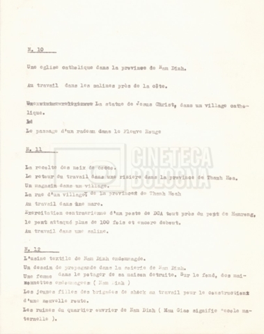 Torna alla banca dati “‘Trattamento ‘Le Vietnam sera libre’” Documento storico Fondo Cecilia Mangini – Lino Del Fra / “Documentari non realizzati” / “Le Vietnam sera libre” Ambiti e contenuto Contiene il trattamento e una scaletta, entrambi in francese. Informazioni archivistiche Cronologia: 03 giugno 1962 – 11 agosto 1966 Numero di ordinamento definitivo: 5.3.1 Numero di ordinamento provvisorio: 36.02 Descrizione fisica: fascicolo Immagini digitalizzate Documenti correlati Vai alla banca dati DOCUMENTO STORICO Corrispondenza