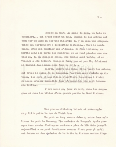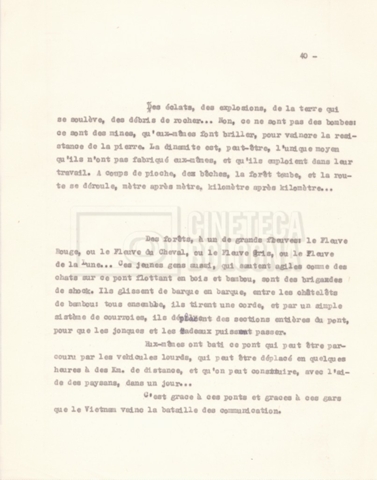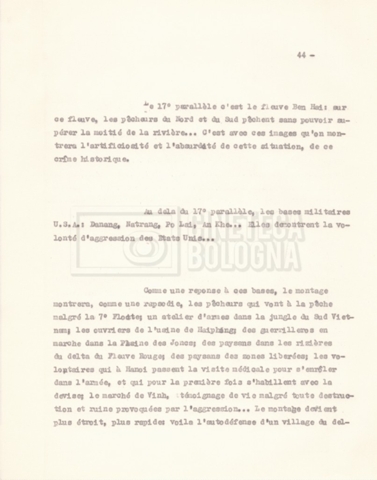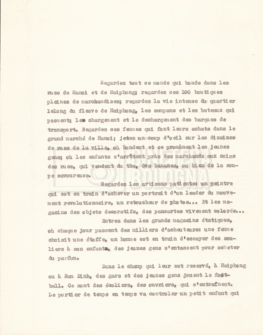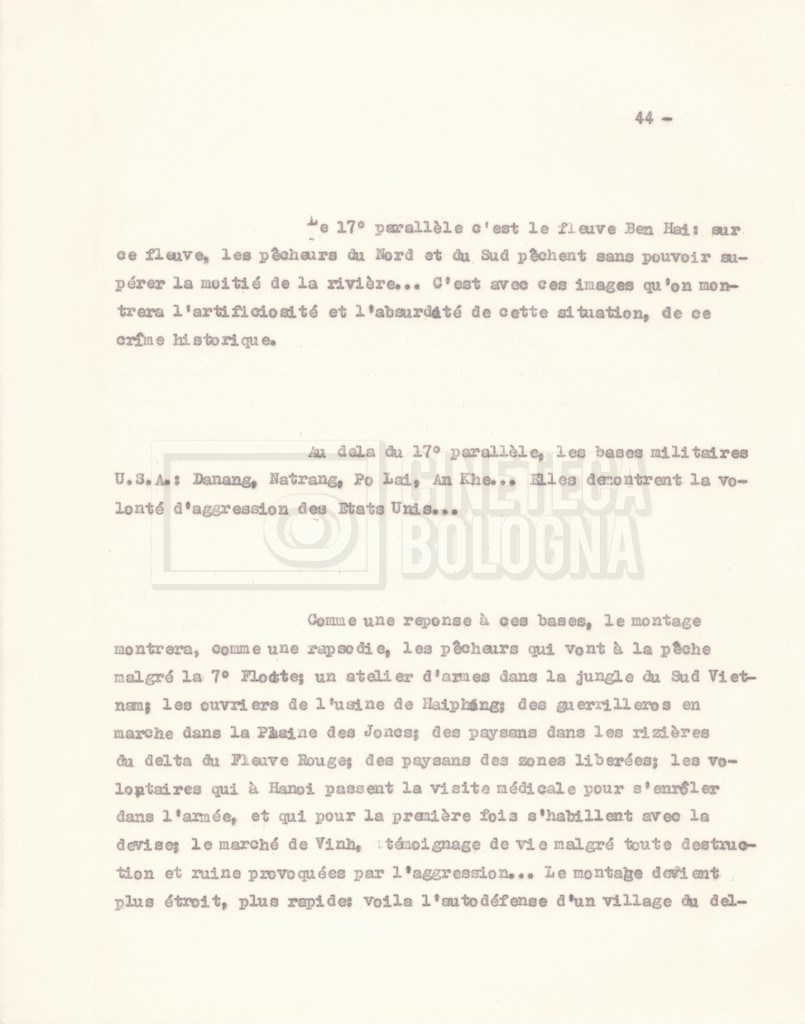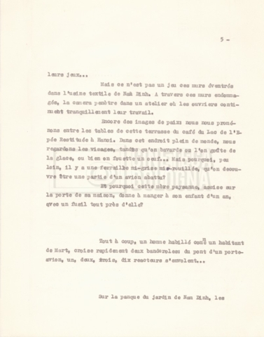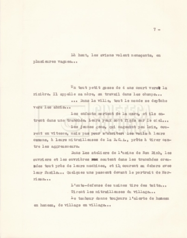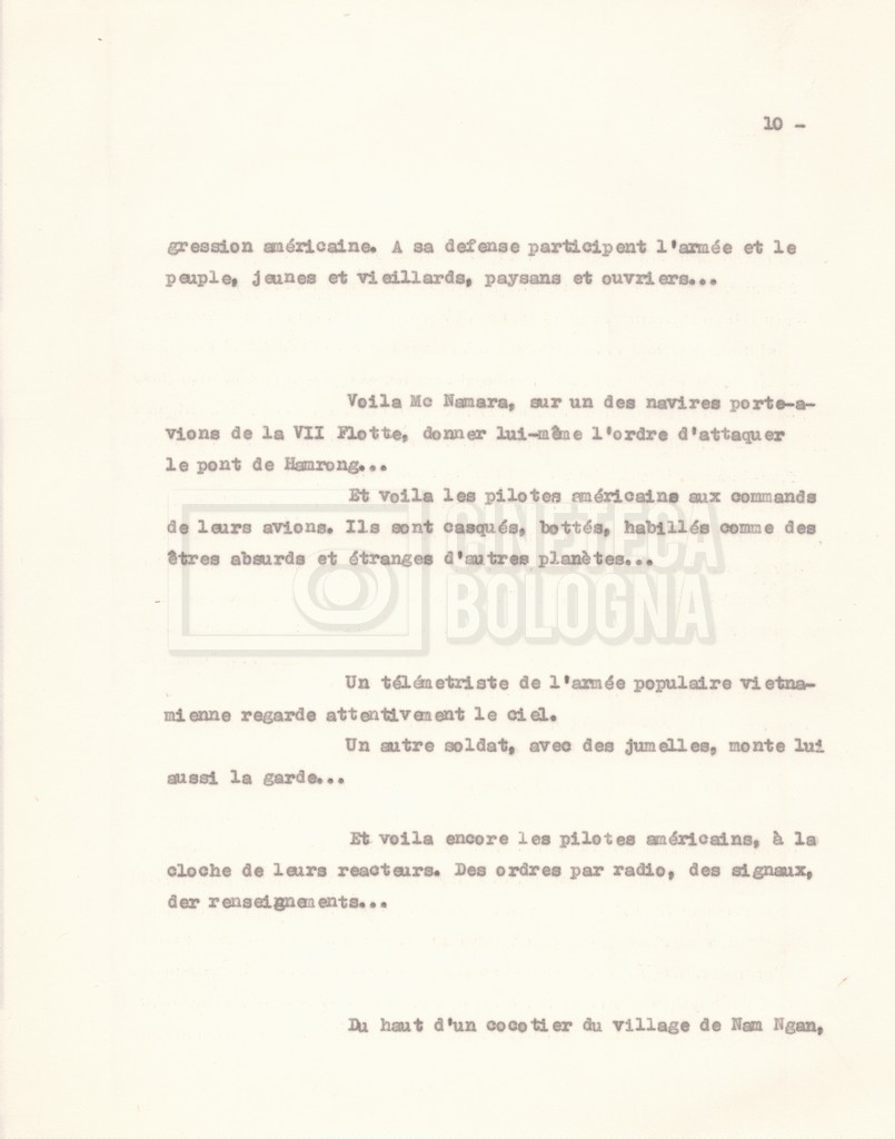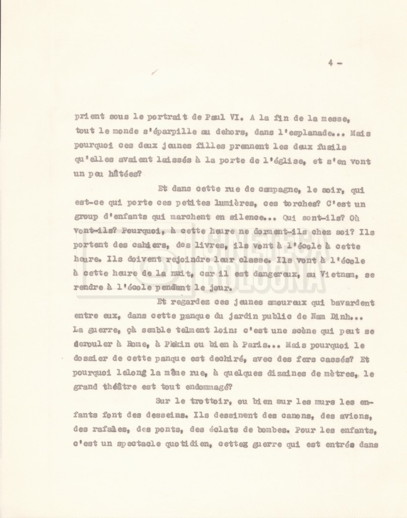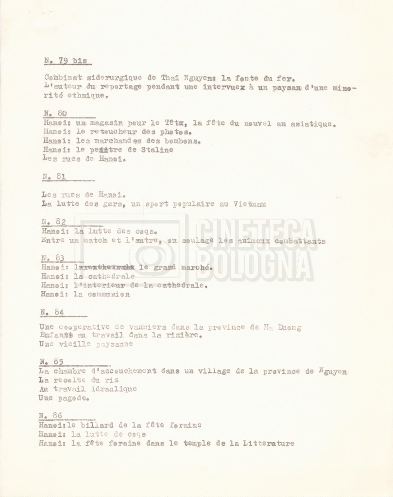 Torna alla banca dati “‘Trattamento ‘Le Vietnam sera libre’” Documento storico Fondo Cecilia Mangini – Lino Del Fra / “Documentari non realizzati” / “Le Vietnam sera libre” Ambiti e contenuto Contiene il trattamento e una scaletta, entrambi in francese. Informazioni archivistiche Cronologia: 03 giugno 1962 – 11 agosto 1966 Numero di ordinamento definitivo: 5.3.1 Numero di ordinamento provvisorio: 36.02 Descrizione fisica: fascicolo Immagini digitalizzate Documenti correlati Vai alla banca dati DOCUMENTO STORICO Corrispondenza