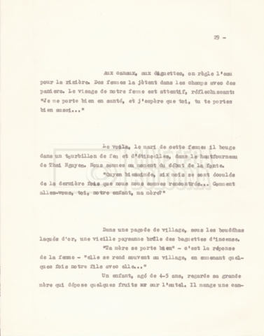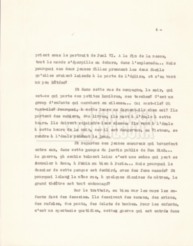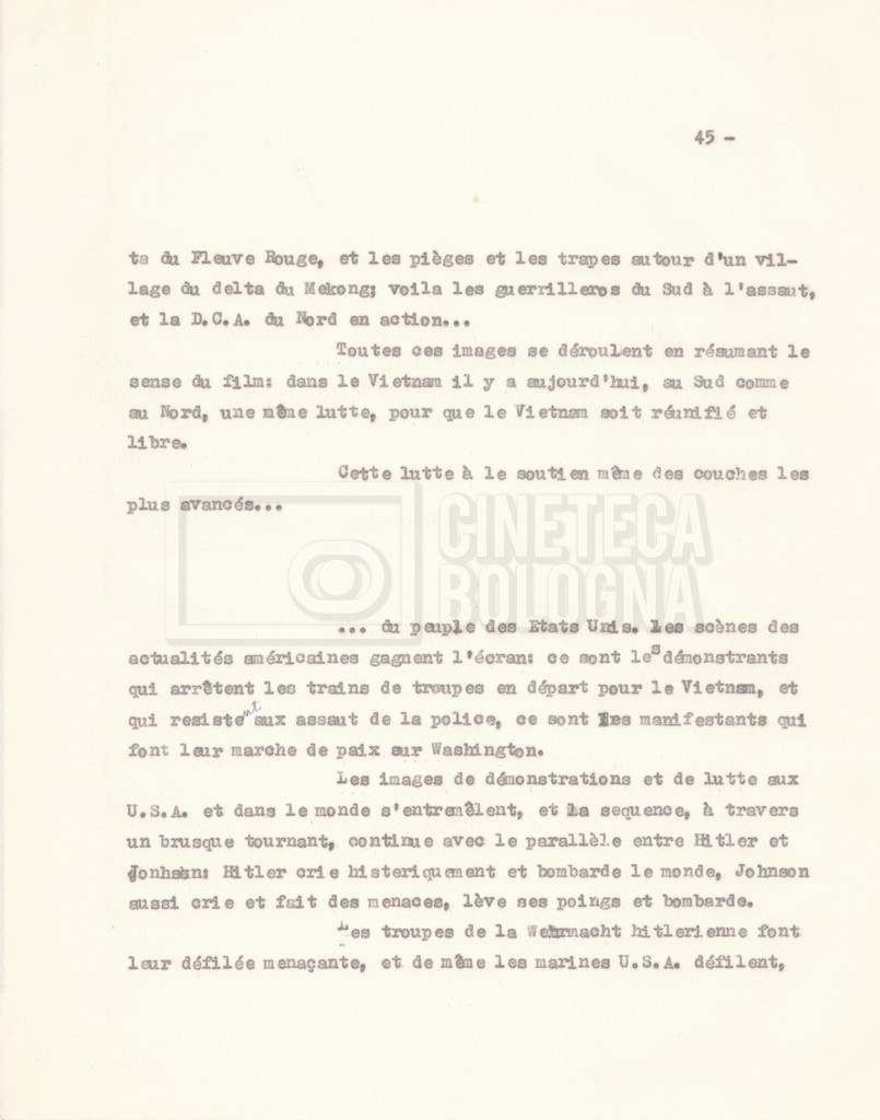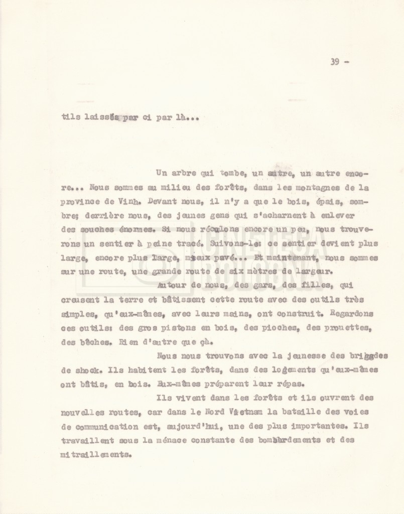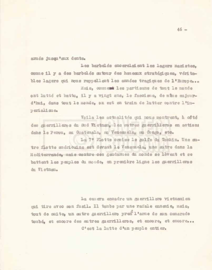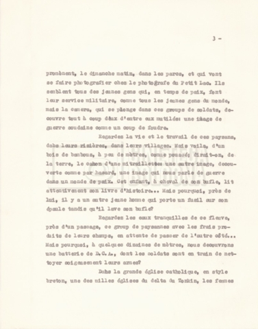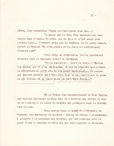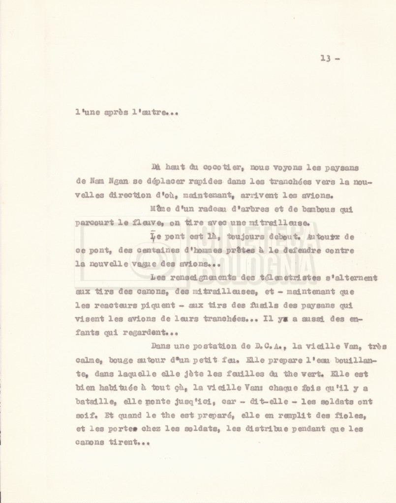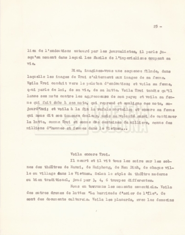 Torna alla banca dati “‘Trattamento ‘Le Vietnam sera libre’” Documento storico Fondo Cecilia Mangini – Lino Del Fra / “Documentari non realizzati” / “Le Vietnam sera libre” Ambiti e contenuto Contiene il trattamento e una scaletta, entrambi in francese. Informazioni archivistiche Cronologia: 03 giugno 1962 – 11 agosto 1966 Numero di ordinamento definitivo: 5.3.1 Numero di ordinamento provvisorio: 36.02 Descrizione fisica: fascicolo Immagini digitalizzate Documenti correlati Vai alla banca dati DOCUMENTO STORICO Corrispondenza