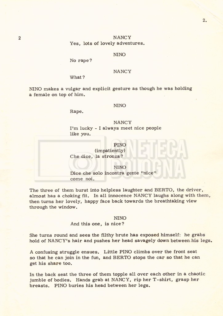 Torna alla banca dati “What?” Documento storico Fondo Mara Blasetti / “Film Mara girati” / What? Ambiti e contenuto Gli autori sono Gérard Brach e Roman Polanski. Informazioni archivistiche Cronologia: [1971 – 1972] Numero di ordinamento definitivo: 1.18.5 Numero di ordinamento provvisorio: M2.3 Descrizione fisica: volume Immagini digitalizzate Informazioni sul film titolo originale: Che? altri titoli: What? – Quoi? – Was? regia: Polanski, Roman anno: 1972 paese di produzione: Italia – Francia – Germania Ovest lingua principale: inglese altre lingue: italiana – francese Documenti correlati Vai alla banca dati DOCUMENTO STORICO “Cast e unit lists” DOCUMENTO STORICO Contratti DOCUMENTO STORICO Materiale preparatorio e corrispondenza DOCUMENTO STORICO “What?”